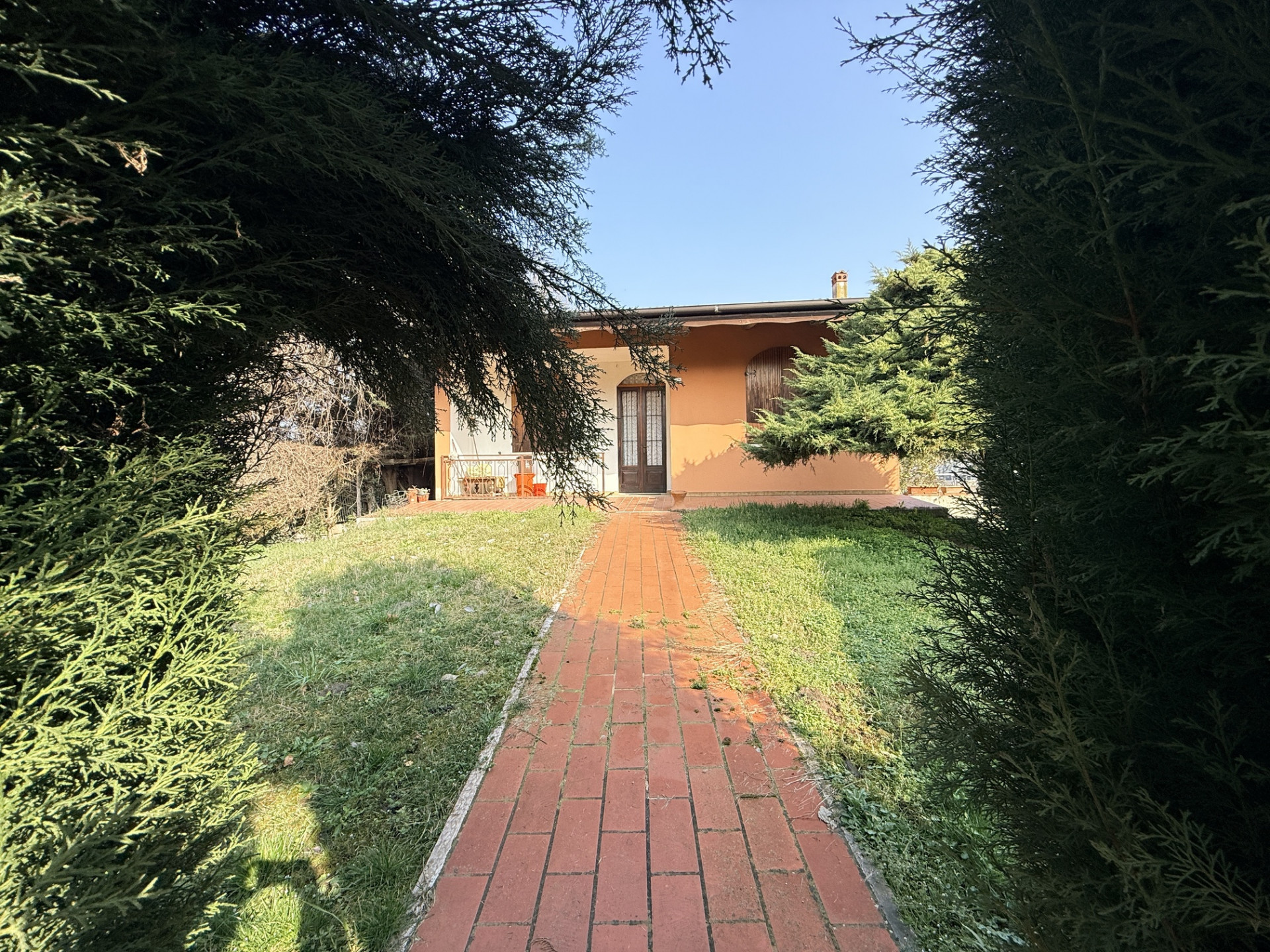 In pieno centro a Oppeano ma al contempo immerso nella tranquillità e circondato da un ampio giardino esclusivo, villino di circa 90 mq composto da ampio ingresso con cucina-soggiorno open space e due camere da letto matrimoniali al piano terra; garage doppio in lunghezza, cantina uso taverna dotata di caminetto, ripostiglio e bagno al piano seminterrato, il tutto direttamente collegato all'abitazione da una comoda scala interna! Immobile UNICO nel suo genere, con grandi spazi esterni ed una piscina interrata privata all'interno della proprietà! Soluzione edificata negli anni '70 con finiture originali, infissi in legno con vetrocamera, ad oggi mantenuta in buone condizioni e pronta per essere abitata!