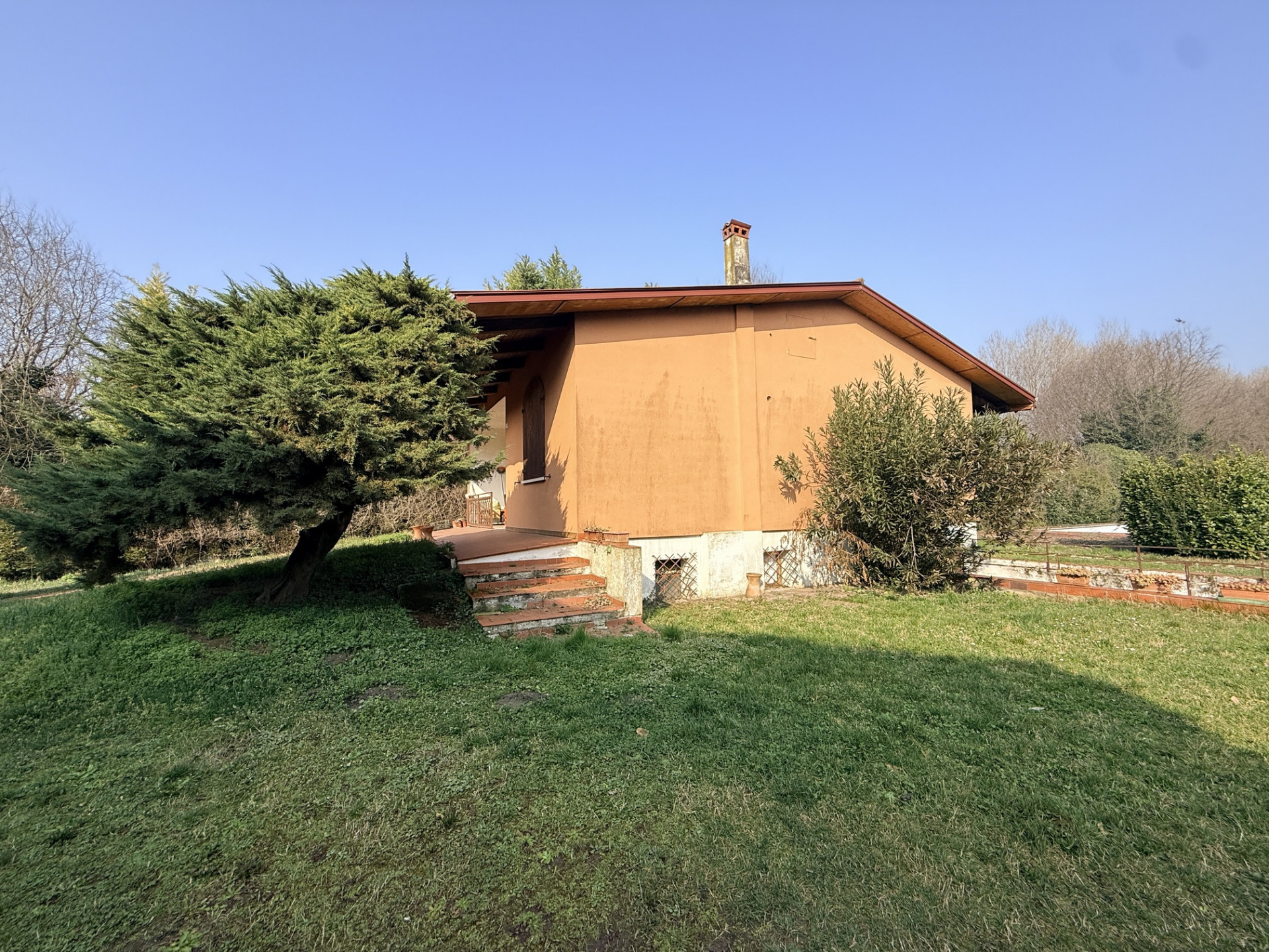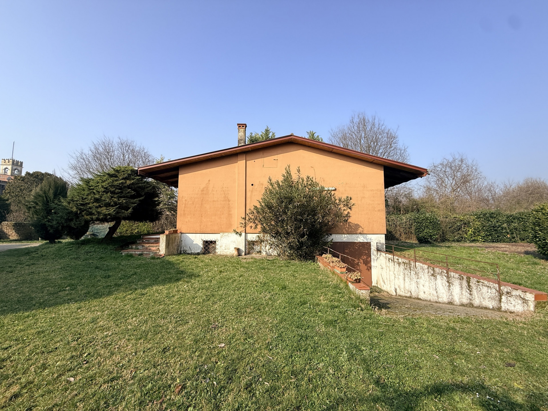In pieno centro a Oppeano ma al contempo immerso nella tranquillità e circondato da un ampio giardino esclusivo, villino di circa 90 mq composto da ampio ingresso con cucina-soggiorno open space e due camere da letto matrimoniali al piano terra; garage doppio in lunghezza, cantina uso taverna dotata di caminetto, ripostiglio e bagno al piano seminterrato, il tutto direttamente collegato all'abitazione da una comoda scala interna! Immobile UNICO nel suo genere, con grandi spazi esterni ed una piscina interrata privata all'interno della proprietà! Soluzione edificata negli anni '70 con finiture originali, infissi in legno con vetrocamera, ad oggi mantenuta in buone condizioni e pronta per essere abitata!